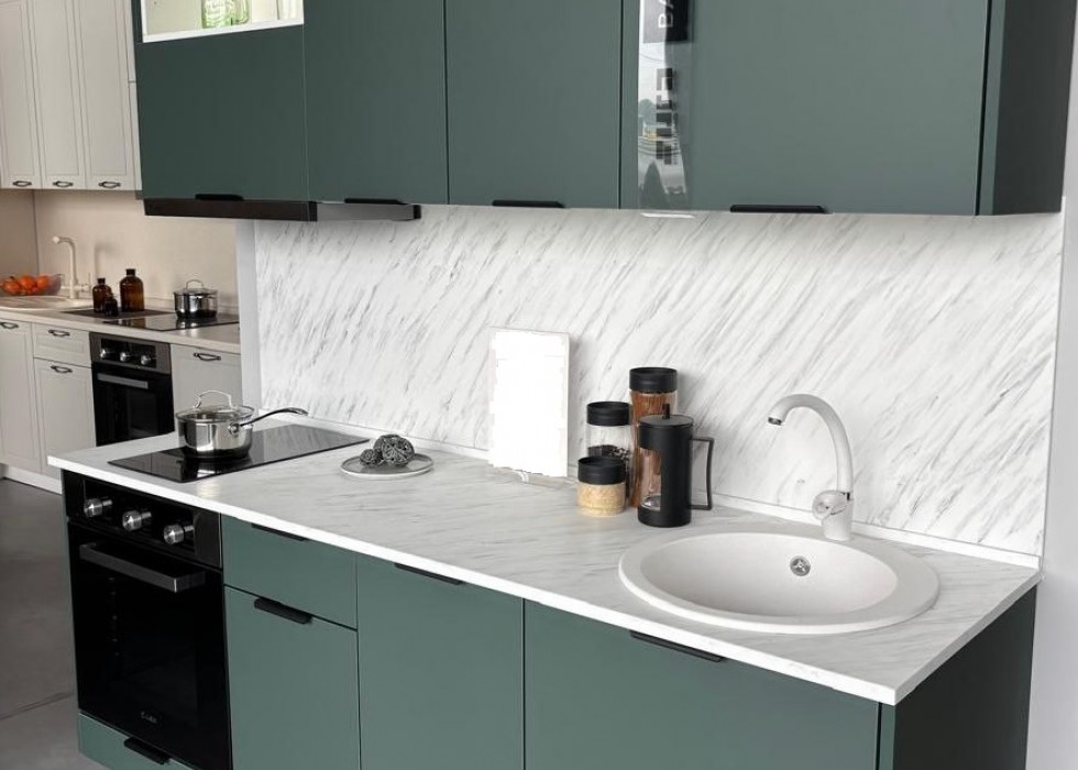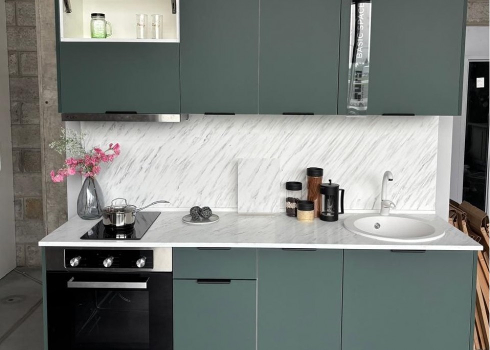 Это абсолютно готовая столешница к установке. Если кухня угловая или длина более 2.4 метра, установщик на месте легко и бесшовно склеит куски. Для столешниц 2.4 метра в комплект кладется бортик.
